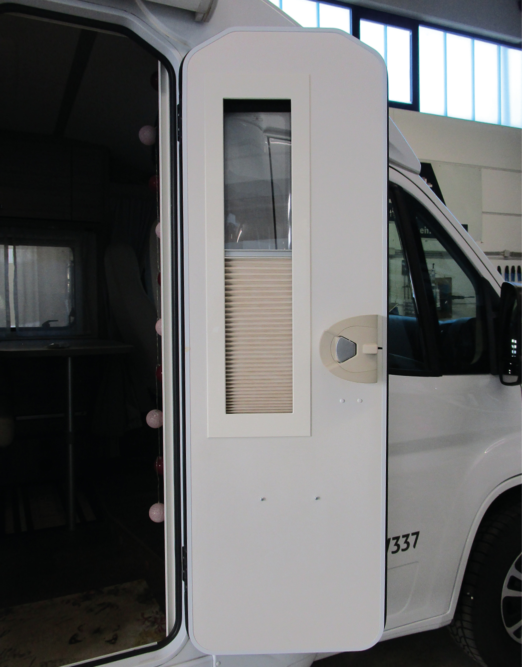 Auf die Innenseite der Tür wird immer ein Verdunkelungsplissée montiert.